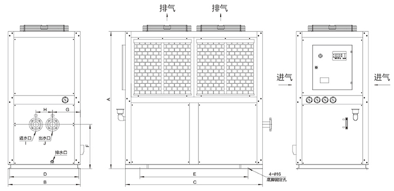 3.冷水機(jī)安裝時(shí),進(jìn)風(fēng)口需預(yù)留≮ 100cm的空間,出風(fēng)口預(yù)留≮300cm的空間;