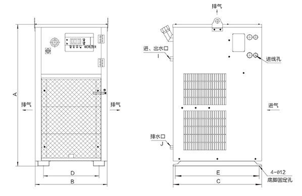3.冷水機安裝時,進風口需預(yù)留≮ 50cm的空間,出風口預(yù)留≮150cm的空間;