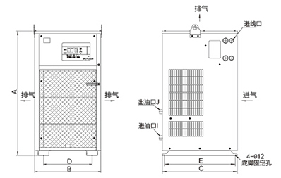 為了安全考慮,油冷機周圍禁止有易燃易爆等危險氣體的存在,也不允許有高熱的物體存在,與此同時要保證油冷機不受太陽光的直接照射。安裝的具體的位置由用戶根據(jù)實際的情況來確定,安裝位置的結(jié)構(gòu)要能夠承受機組的重量以及正常運轉(zhuǎn)時所傳遞出來的力。
