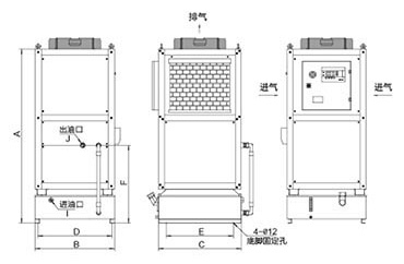 5.安裝時,在空氣吸入口處需保留≮ 80cm的空間,在熱風(fēng)排出口處需保留≮200cm的空間;