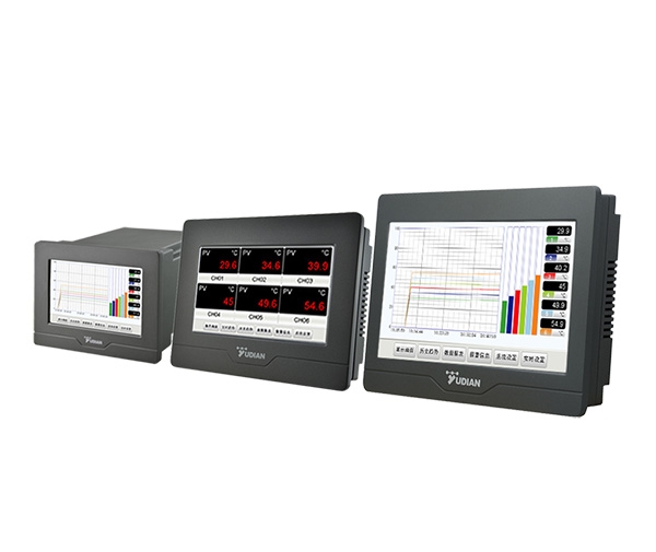 AI系列多路大尺寸觸摸操作記錄型顯示報(bào)警儀表是在傳承了宇電多項(xiàng)經(jīng)典技術(shù)的基礎(chǔ)上研發(fā)推出的一款集測(cè)量、顯示、報(bào)警、記錄等功能于一體的型儀表,可支持6個(gè)回路信號(hào)直接輸入。具有5英寸、7英寸與9英寸三個(gè)尺寸,每個(gè)尺寸都有2路、4路、6路的型號(hào)供選擇。9英寸厚度38mm,因此對(duì)安裝空間要求低,可以很方便地安裝在各類(lèi)設(shè)備的操作面板上。全新工業(yè)級(jí)觸摸屏式操作,主要參數(shù)設(shè)置在一個(gè)界面內(nèi)輕松完成,而且設(shè)置菜單全部都是中文的,客戶(hù)還可以通過(guò)移動(dòng)設(shè)備(如:手機(jī),平板電腦等)進(jìn)行監(jiān)控與操作。